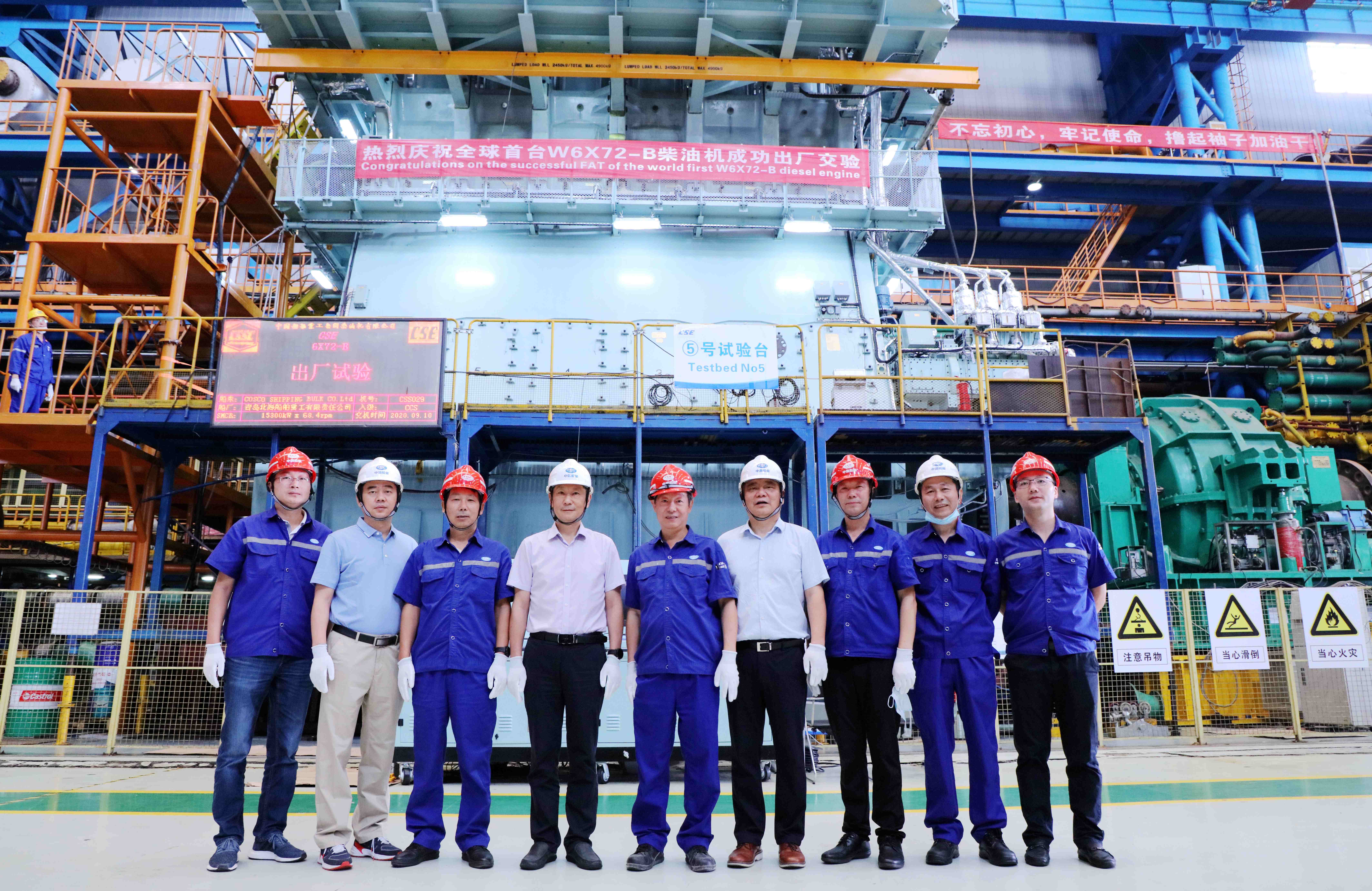 2020年9月10日,世界首台搭载新型智能控制系统的W6X72-B型柴油机在青岛总装厂顺利交验。这台柴油机最大持续功率为1.53万千瓦、重达600多吨,将安装在中远海运散货运输有限公司21万吨散货船上。新一代绿色环保船用低速智能柴油机的顺利交验,是我国在船舶动力领域取得的又一成果。