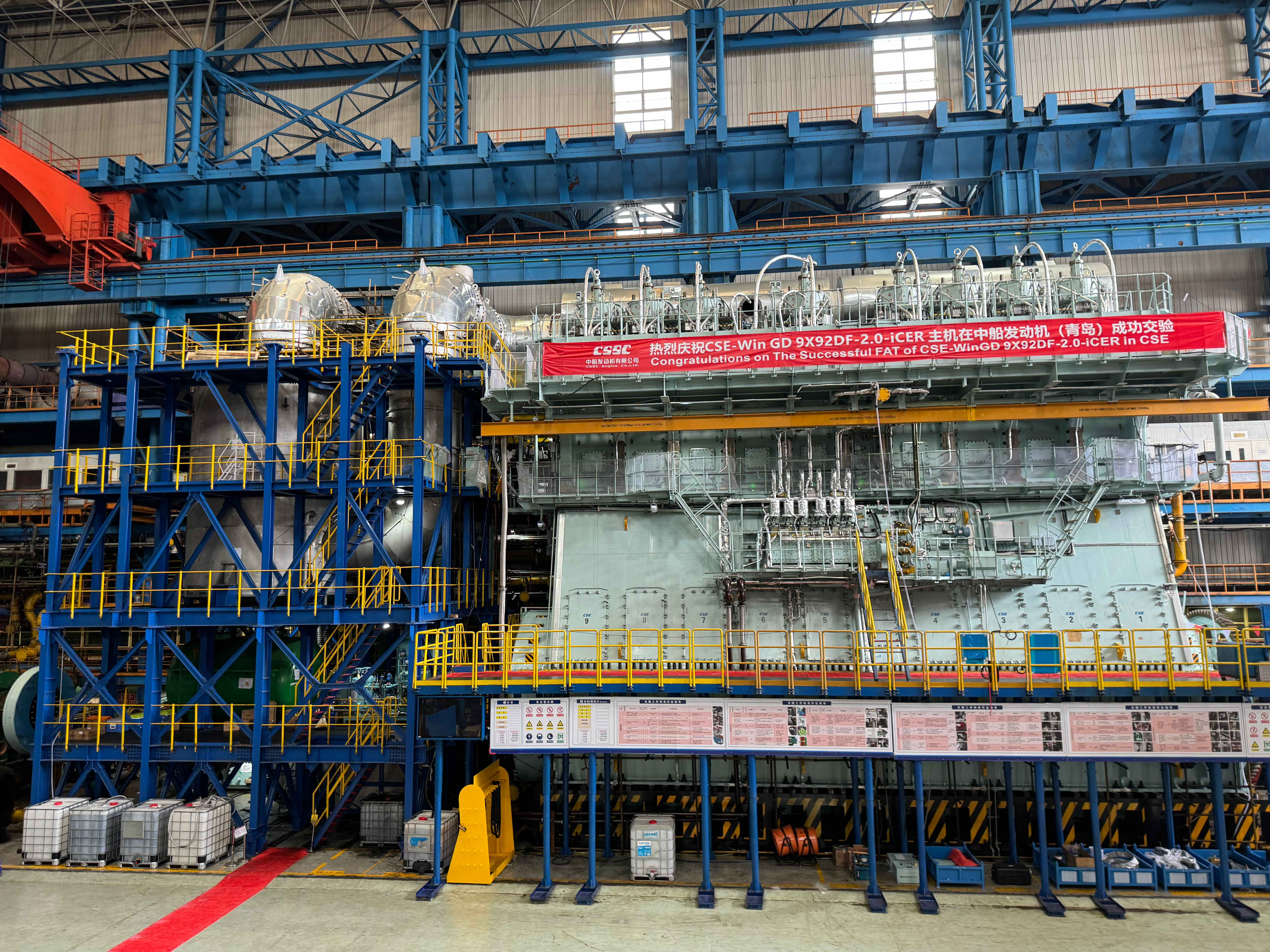 9月30日,中国船舶中船发动机建造的大缸径LNG双燃料船用低速发动机9X92DF-2.0+iCER在青岛本部成功交付,该发动机缸径920mm、冲程3468mm、最大功率65117马力、高16.11米、重1630吨,应用了智能控制废气再循环技术(iCER),将安装在广船国际为地中海航运建造的16000TEU集装箱船上。该主机的成功交付,标志着公司具备大缸径LNG双燃料船用低速发动机的生产制造和试验能力,也标志着公司在绿色船舶发动机建造领域实现了新的重大突破。