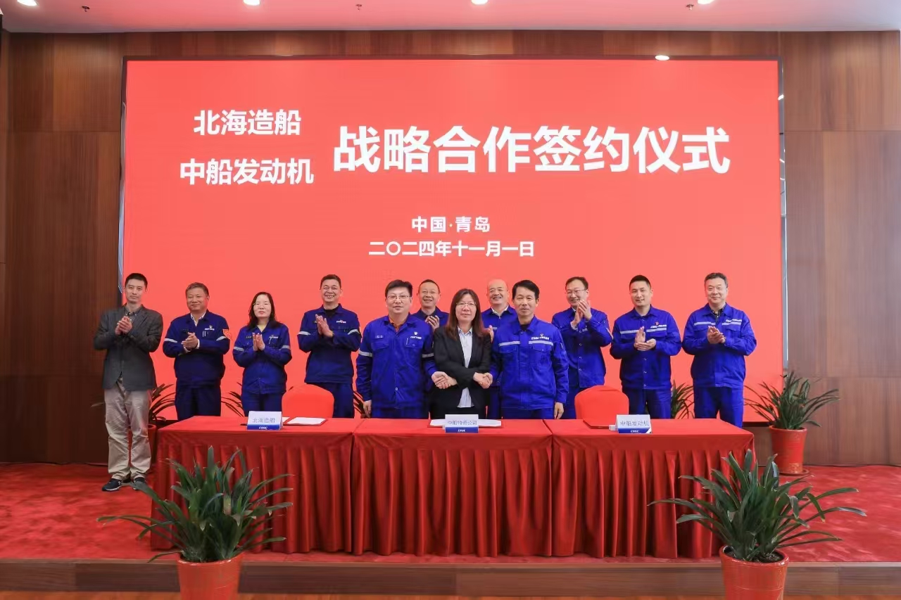 2024年11月1日,中船发动机与北海造船签订战略合作协议。中船发动机党委书记、董事长付向昭,北海造船党委书记、董事长温永生,党委副书记、总经理罗乐,中船发动机副总经理陈义仿等出席签约仪式,共同见证了这一重要时刻。